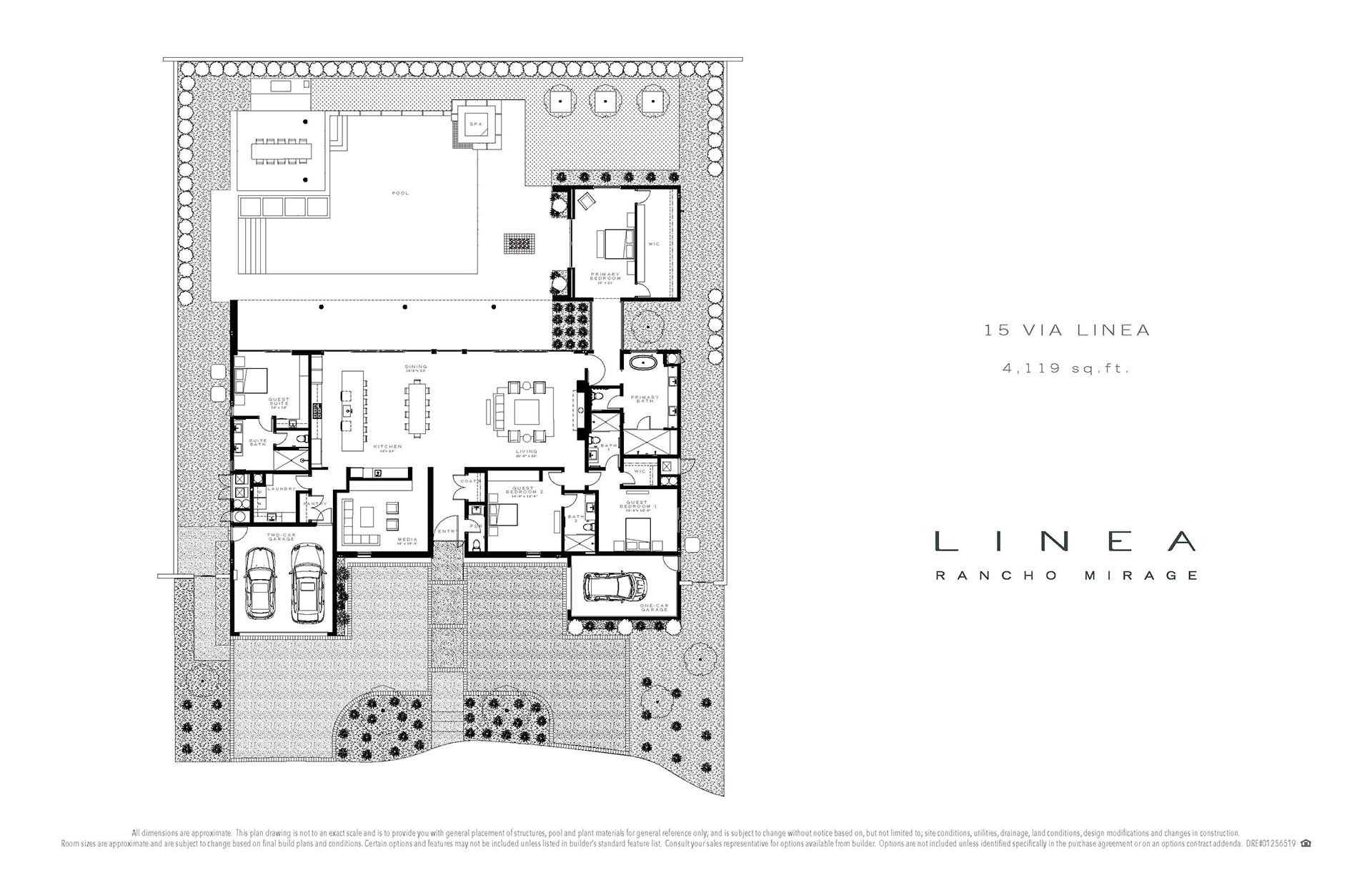 Residence Fifteen presents the essential qualities of desert resort architecture. Providing a long central pavilion with flexible living space throughout. Our interior design team created striking classic modernist ambiance with elegant designer accents. The impressive west view home captivates drama and nature, with extensive indoor/outdoor connections, outdoor luxury living and entertaining spaces. The large plate glass hallway to the Primary Suite reinforces the cubic design thesis separating the north wing from the main house with an exciting transparent connection adding intriguing vistas to it’s surrounding desertscape throughout the residence. Exterior details are created in steel trellis work for privacy and evening light diffusion creating a stunning lit night façade; and a shade cabana appears floating gracefully along the oversized L-shape pool for gathering and making reflections of its sculptural composition.